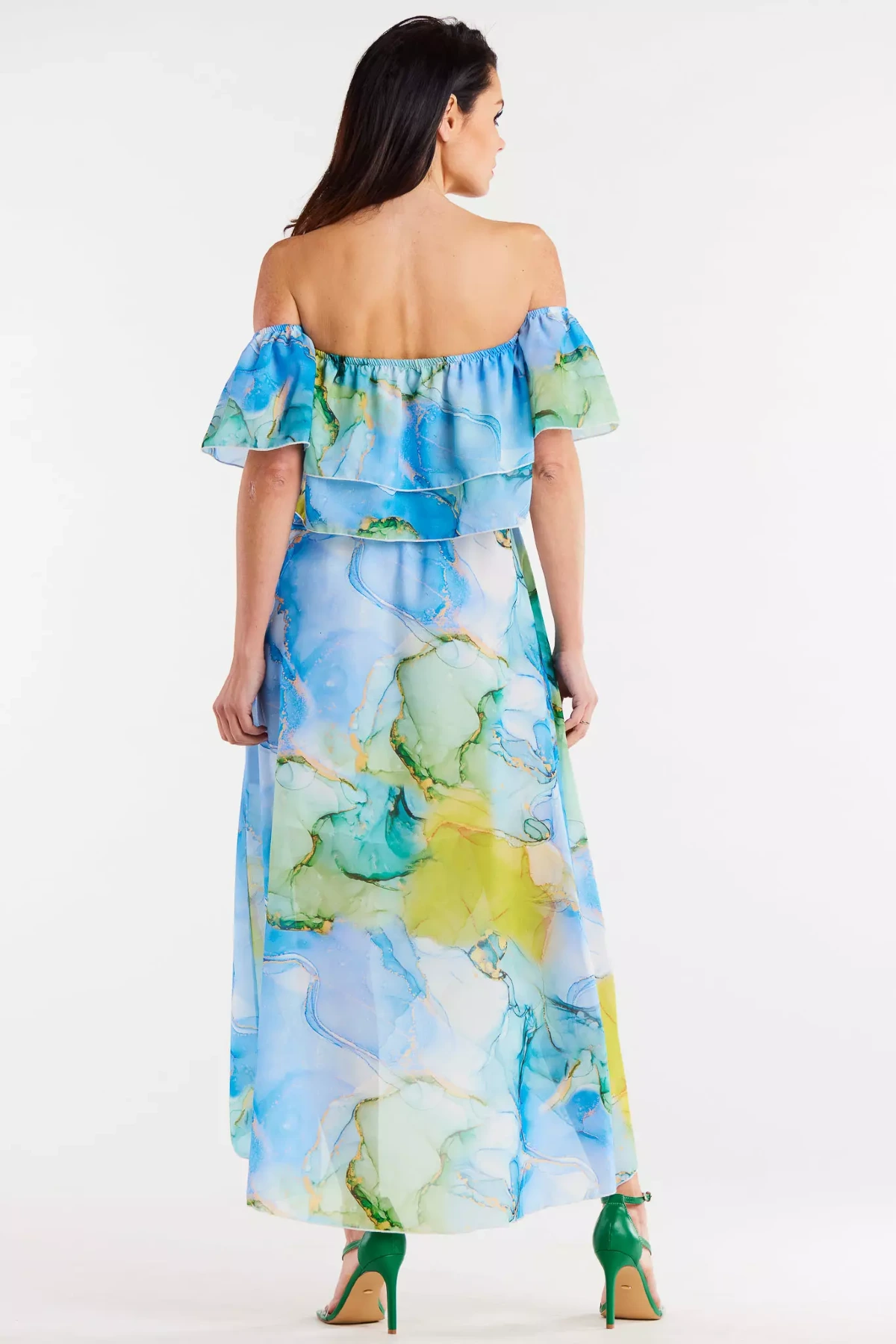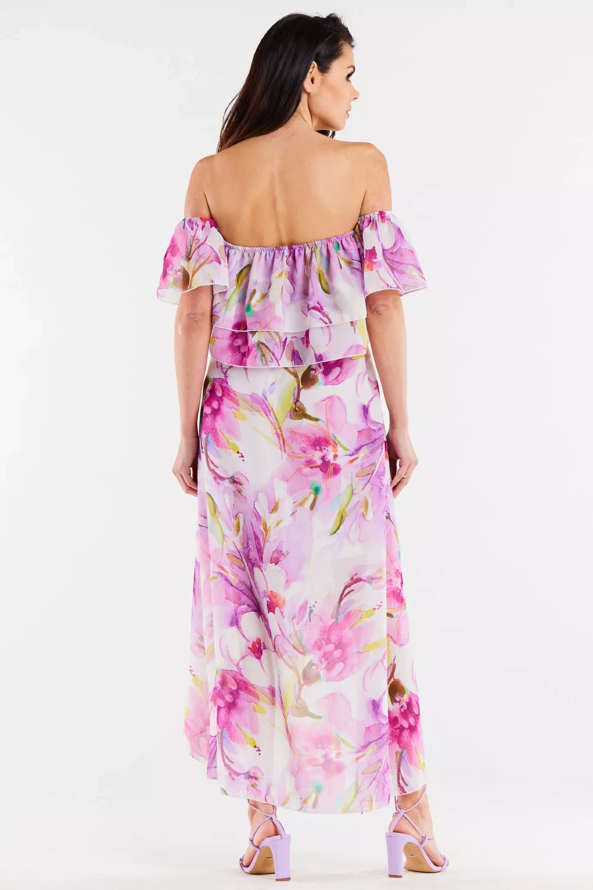 Asymetryczna spódnica z falbanami to kluczowy element tegorocznej mody, który doskonale wpisuje się w letnie stylizacje. Wykonana z lekkiego szyfonu, nadaje każdemu zestawowi dziewczęcego uroku i lekkości. Dzięki gumce w pasie, spódnica zapewnia wygodne dopasowanie do sylwetki. Ciekawy asymetryczny dół, z krótszym przodem, podkreśla nogi, natomiast dłuższy tył przywołuje tropikalny klimat, nadając całości oryginalnego charakteru. Idealna na upalne dni, kiedy szukasz połączenia stylu i komfortu.