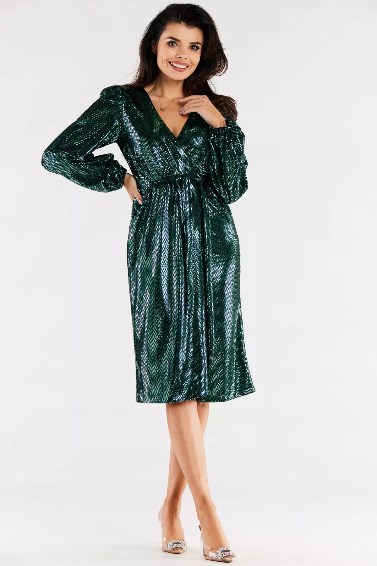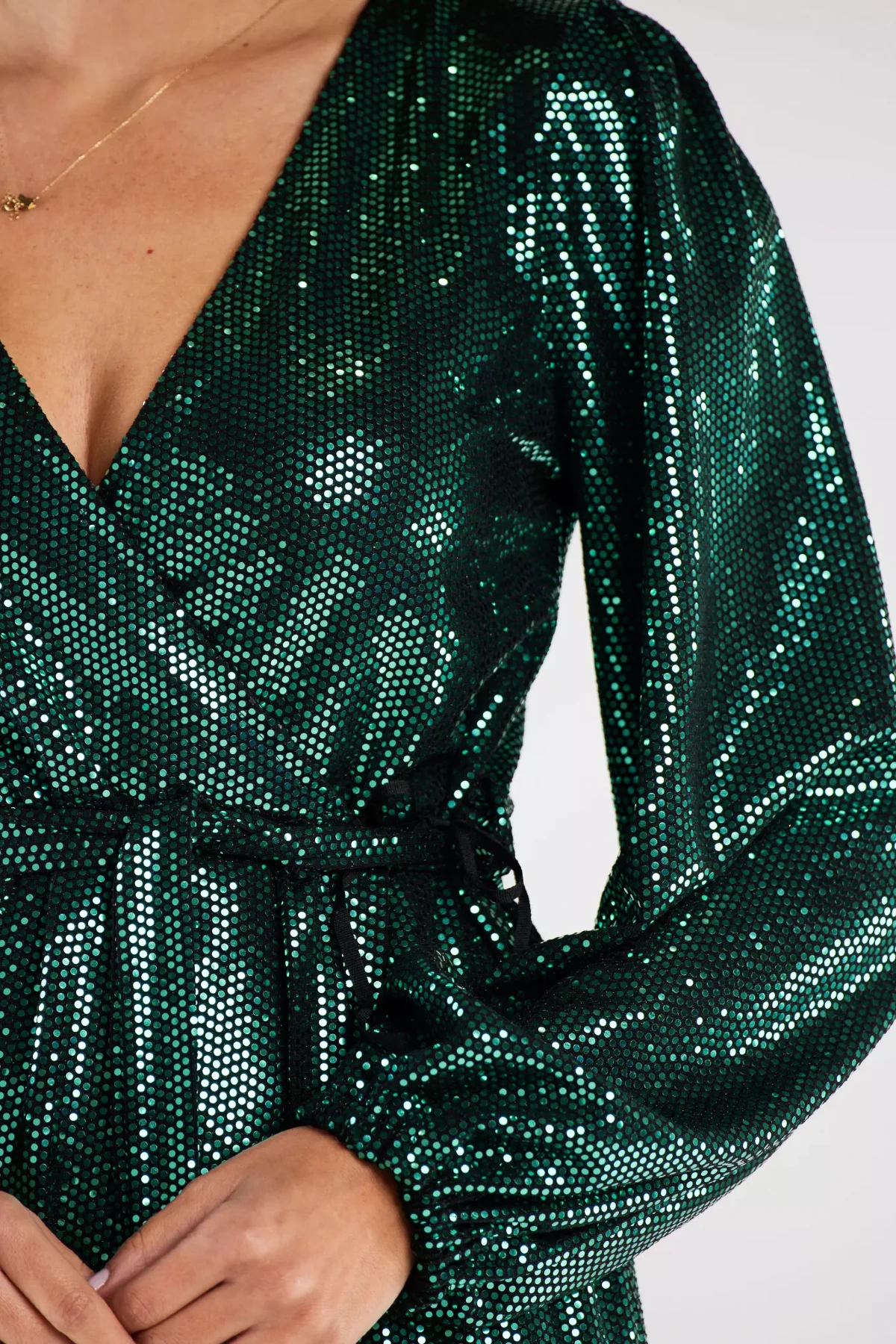 Cekinowa sukienka o kopertowym kroju