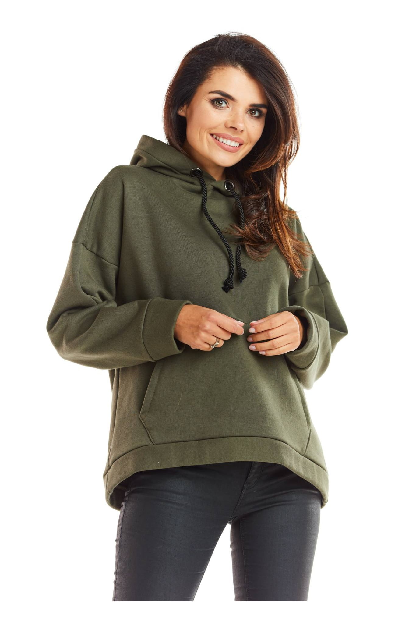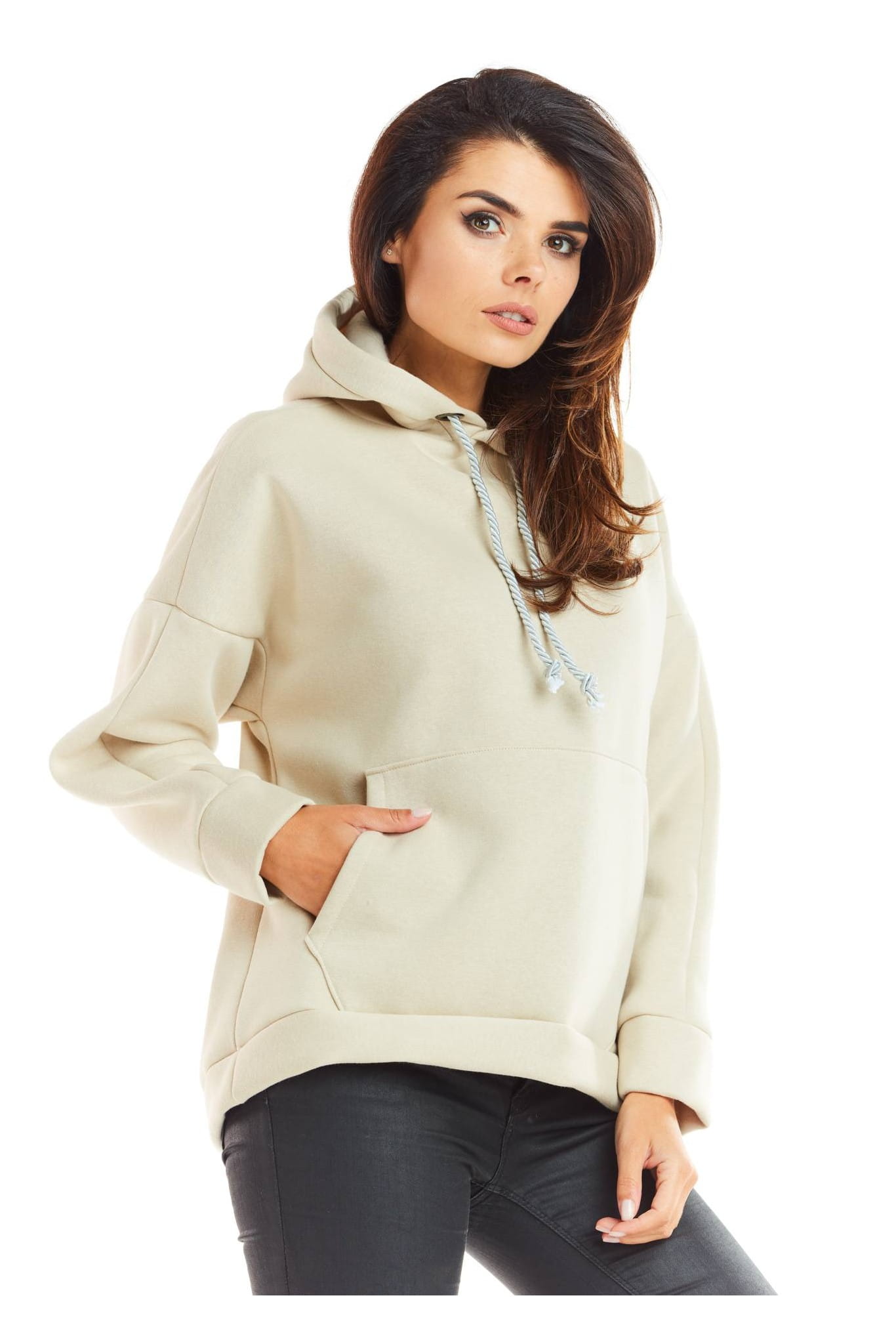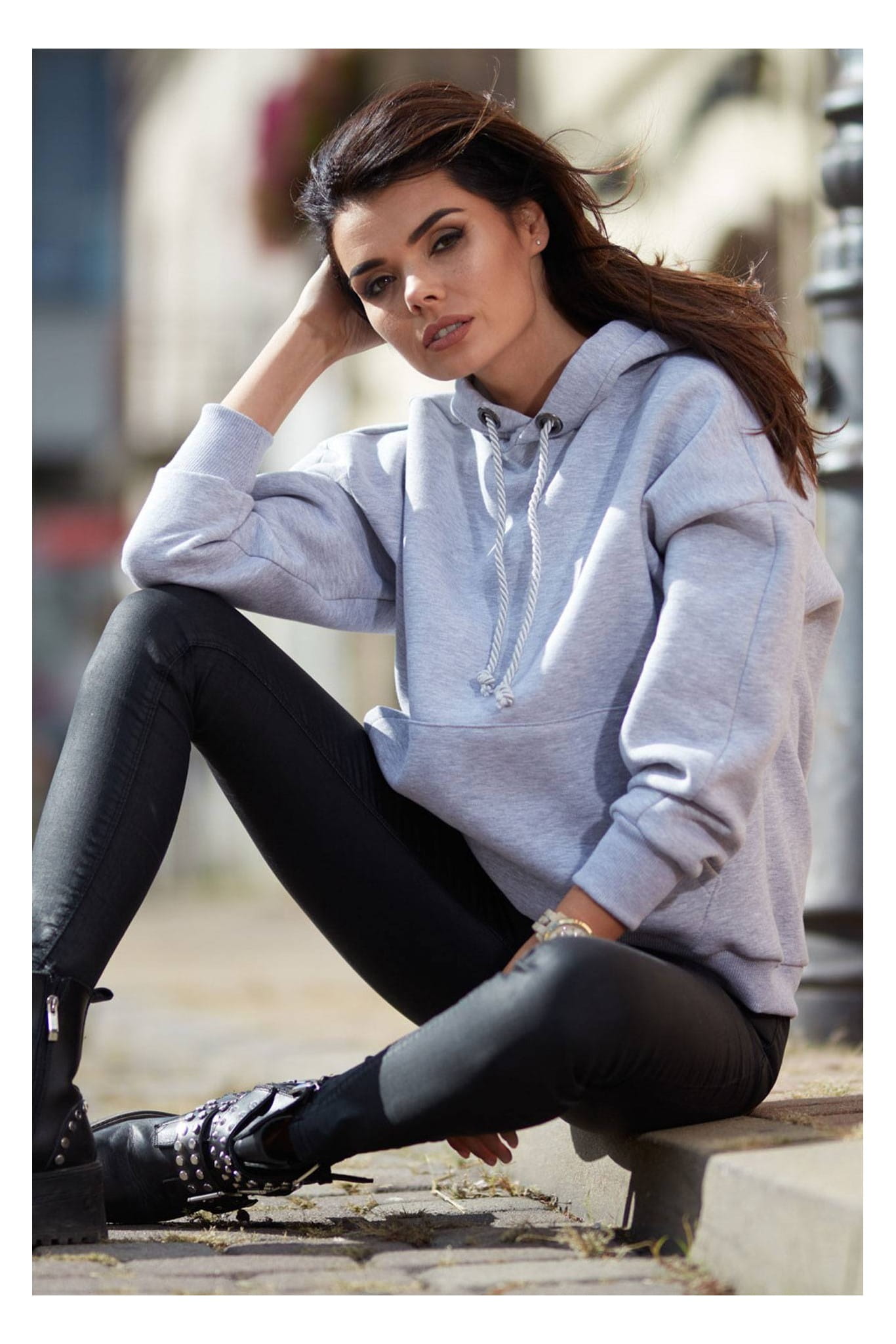 Damska bluza basic z kapturem, to idealna propozycja dla kobiet, które poszukują stylowego, a jednocześnie wygodnego ubioru. Uszyta z solidnych, wysokogatunkowych materiałów, gwarantuje komfort noszenia przez cały dzień i zachowuje świetny wygląd, niezależnie od intensywności użytkowania. Bluza wyróżnia się prostym fasonem i uniwersalnym odcieniem, dzięki czemu łatwo dopasujesz ją do wielu stylizacji. Kaptur z regulacją oraz obszerna kieszeń kangurka dodają jej funkcjonalności i luźnego charakteru. Ściągacze na rękawach i dole zapewniają doskonałe dopasowanie, podkreślając sylwetkę. To wszechstronny element garderoby, który idealnie komponuje się zarówno z jeansami, jak i legginsami, tworząc modną, wygodną stylizację na każdą okazję.