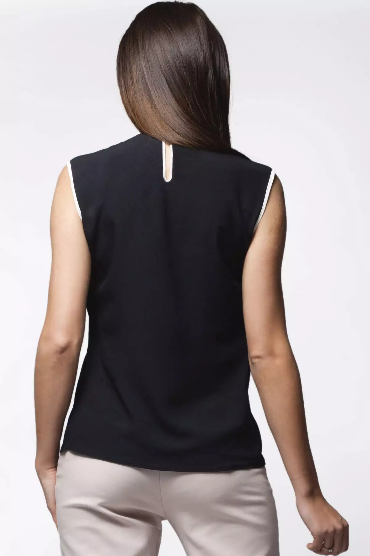 Elegancka bluzka wigilijna z dekoracyjną falbanką, która wyróżnia się subtelnymi zdobieniami biegnącymi wzdłuż pionowego pasa, dodającymi wyjątkowego uroku i wysmuklającymi sylwetkę. Klasyczny, okrągły dekolt delikatnie podkreśla szyję, nadając stylizacji subtelnej elegancji. Wykonana z materiału wysokiej jakości, zapewnia wygodę noszenia przez cały dzień. Idealnie komponuje się zarówno z ołówkowymi spódnicami, jak i eleganckimi spodniami, tworząc uniwersalne zestawy na różne okazje.