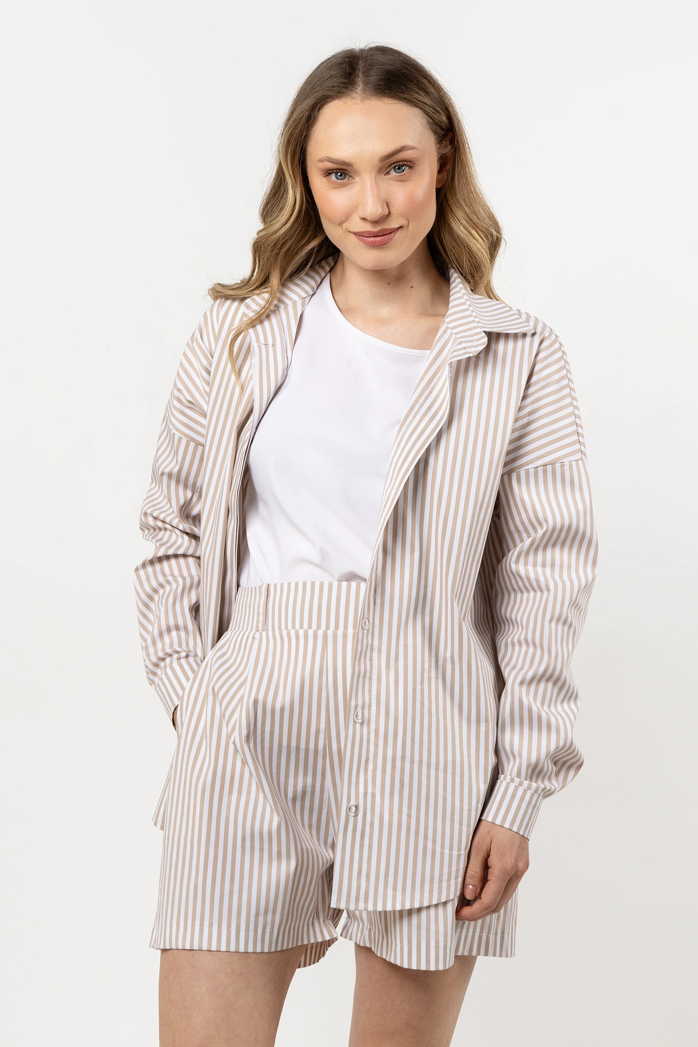 Elegancka koszula damska z guzikami i długimi rękawami, łącząca klasyczny styl z nowoczesnym luzem. Wykonana z lekkiego, oddychającego materiału, który zapewnia komfort przez cały dzień. Swobodny fason gwarantuje wygodę noszenia i świetnie dopasowuje się do różnych sylwetek.