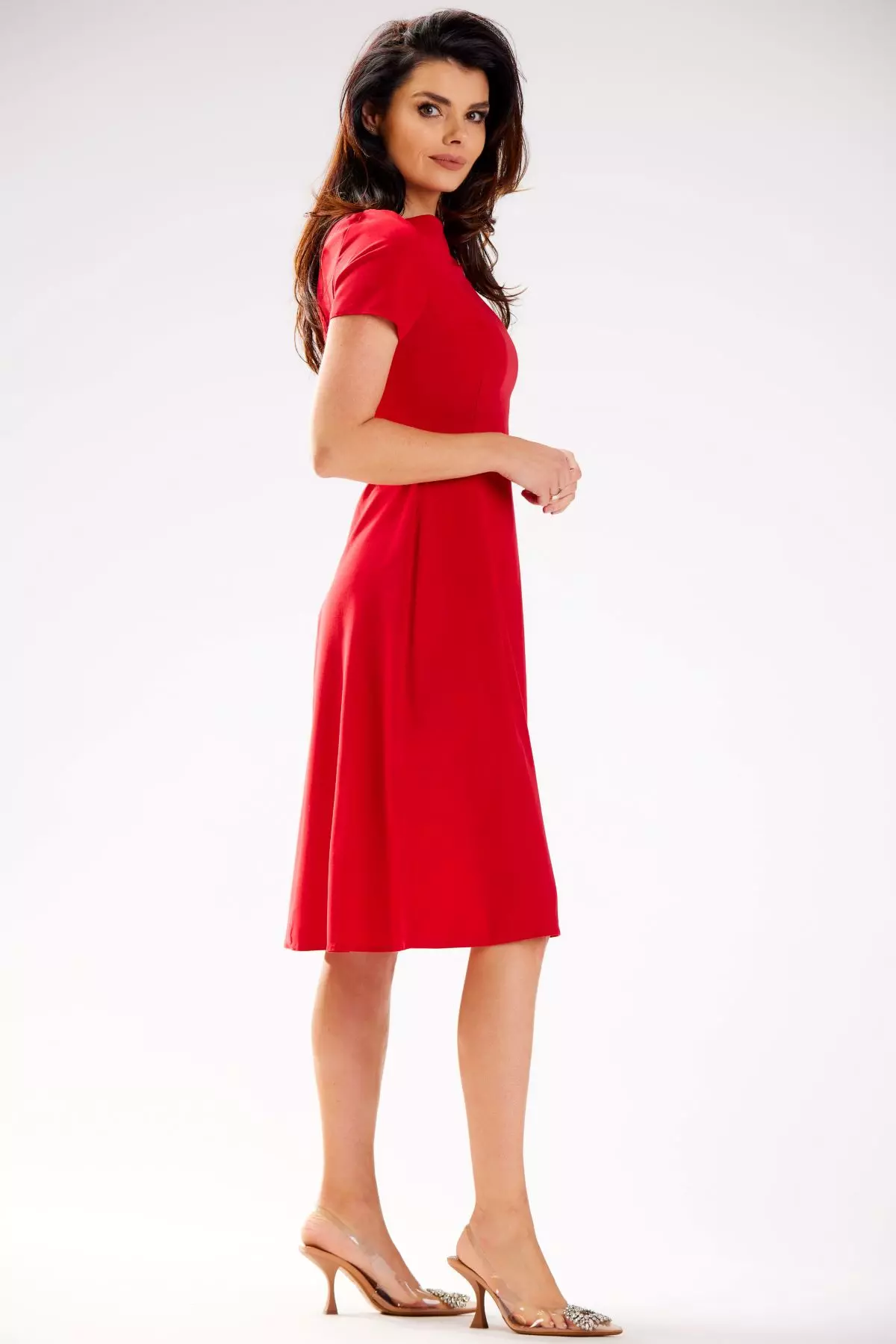 Elegancka sukienka midi z krótkim rękawem