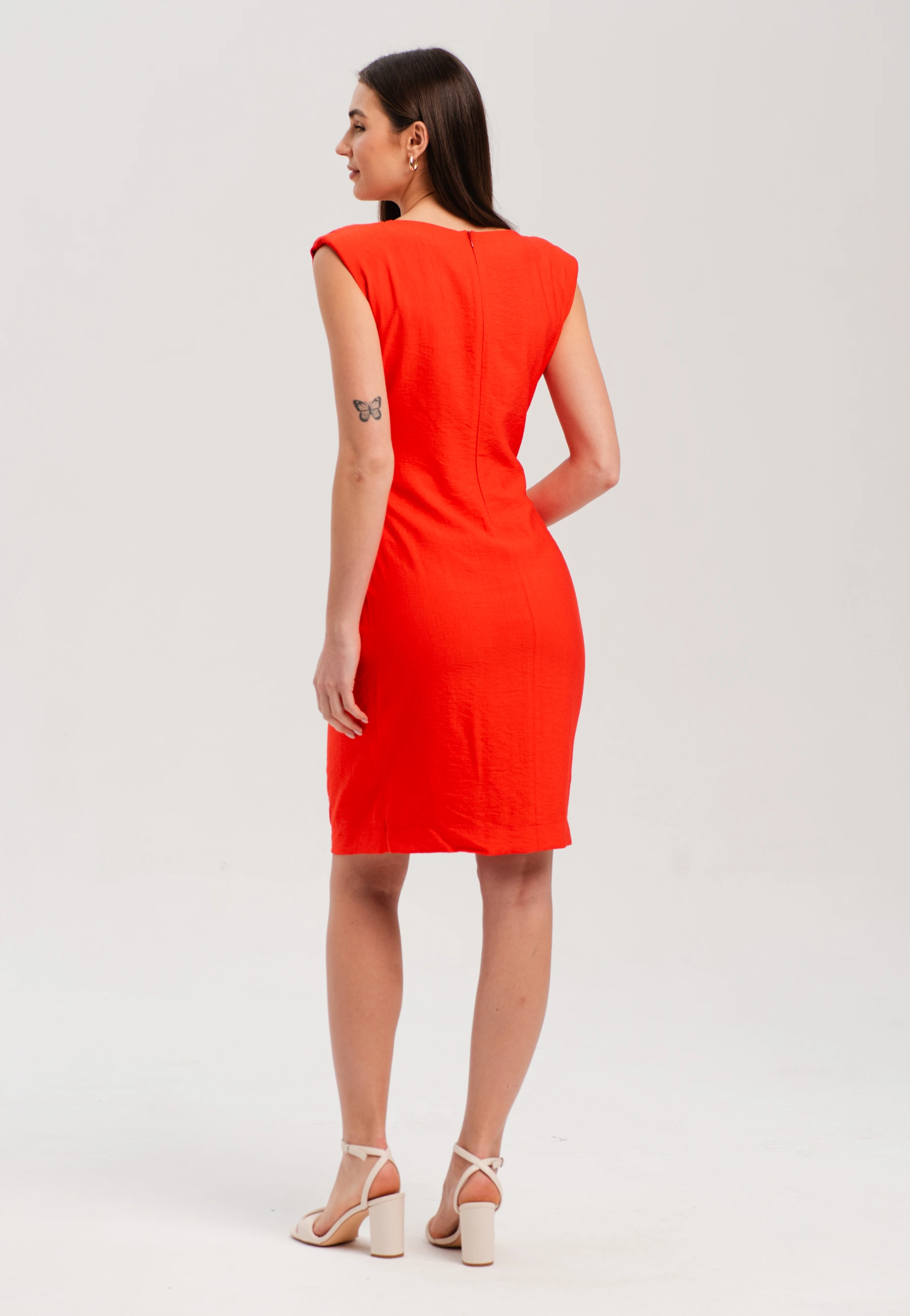 Elegancka sukienka z naturalnego materiału i zakładanym przodem. Wyrafinowana i wygodna — ta sukienka ołówkowa z zakładanym dekoltem to kwintesencja kobiecej elegancji w nowoczesnym wydaniu. Dopasowany fason pięknie podkreśla linię sylwetki, a przemyślane marszczenia po bokach nadają jej lekkości i pomagają subtelnie zatuszować ewentualne niedoskonałości. Klasyczna długość do kolan sprawia, że jest to model stworzony zarówno do pracy, jak i na wyjątkowe okazje.
