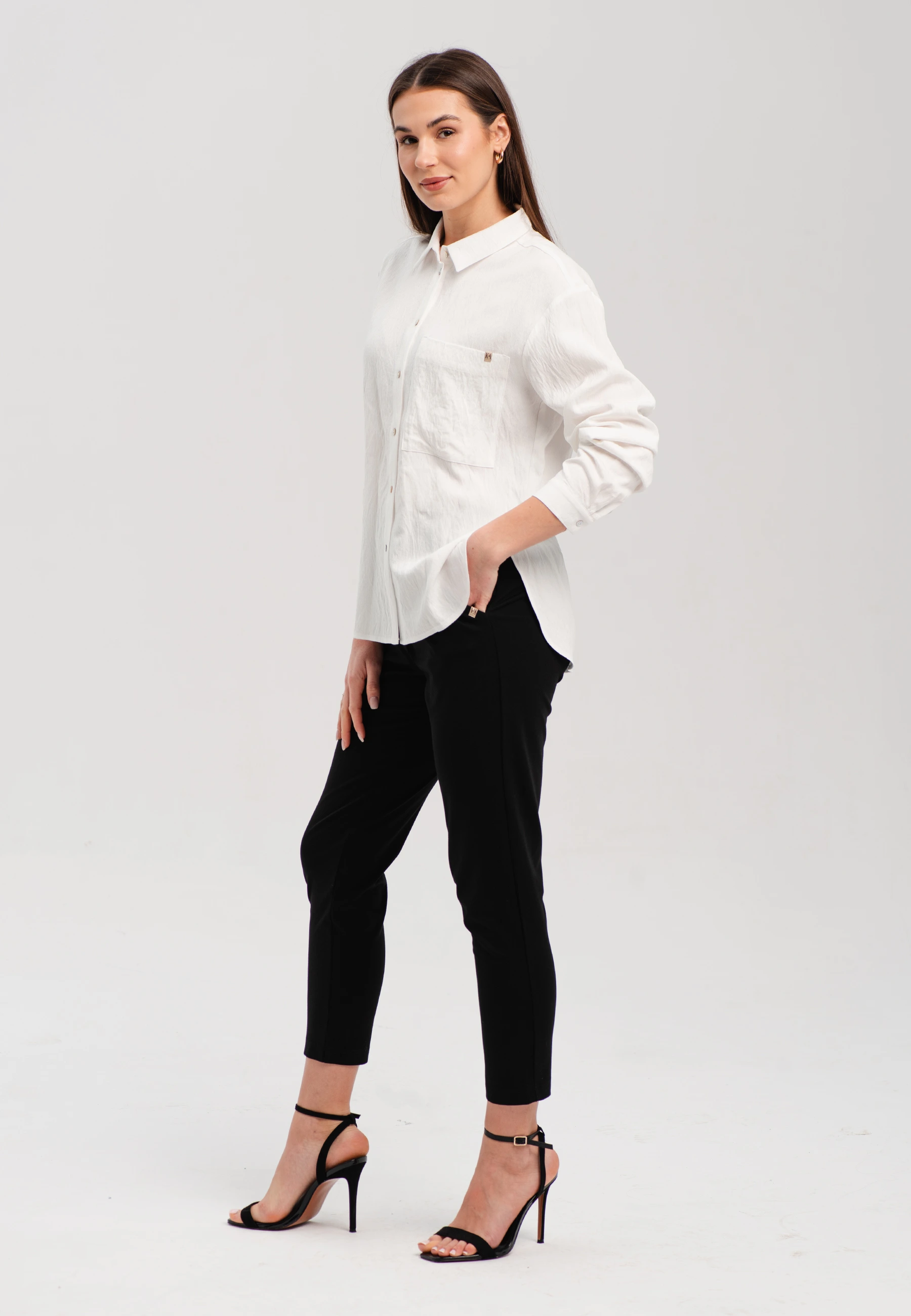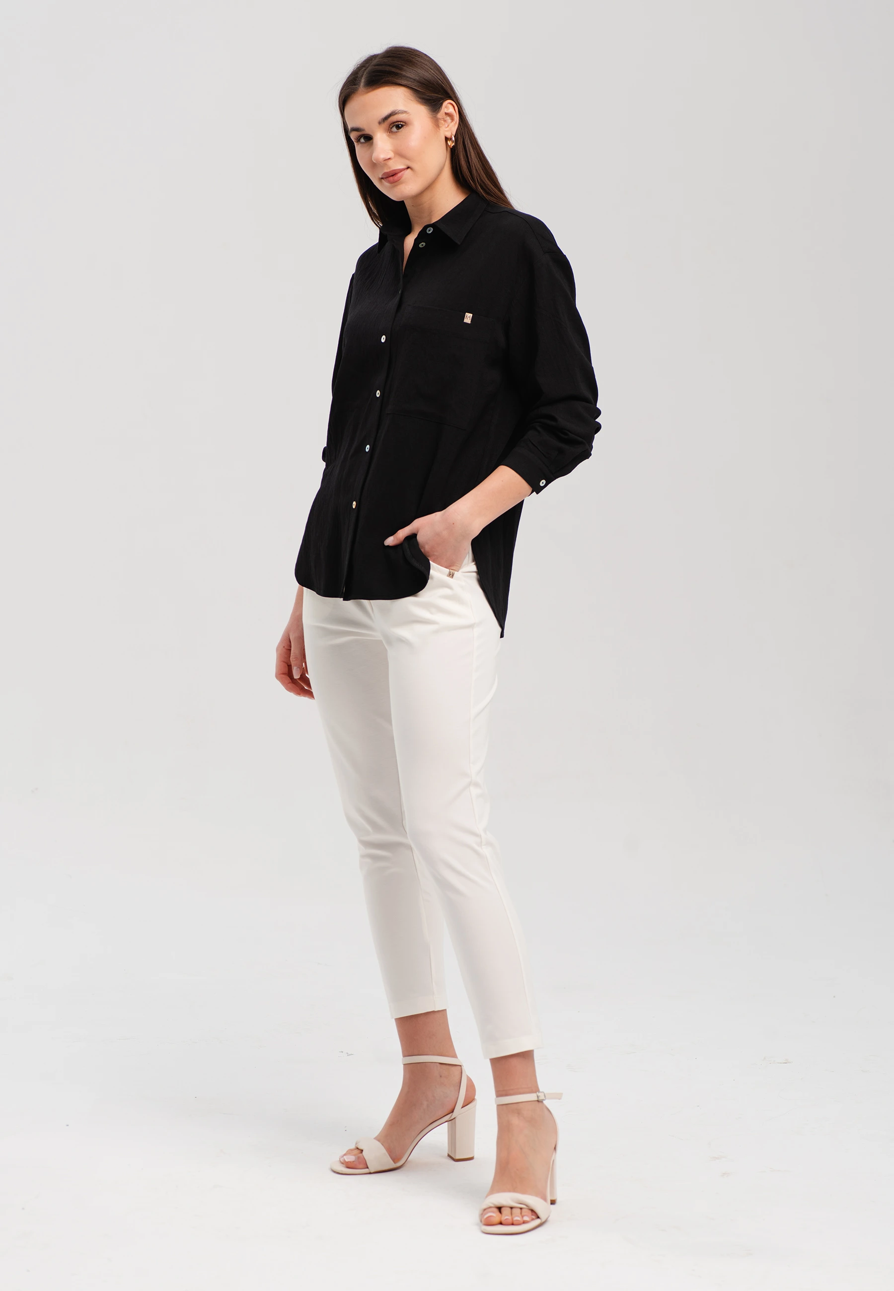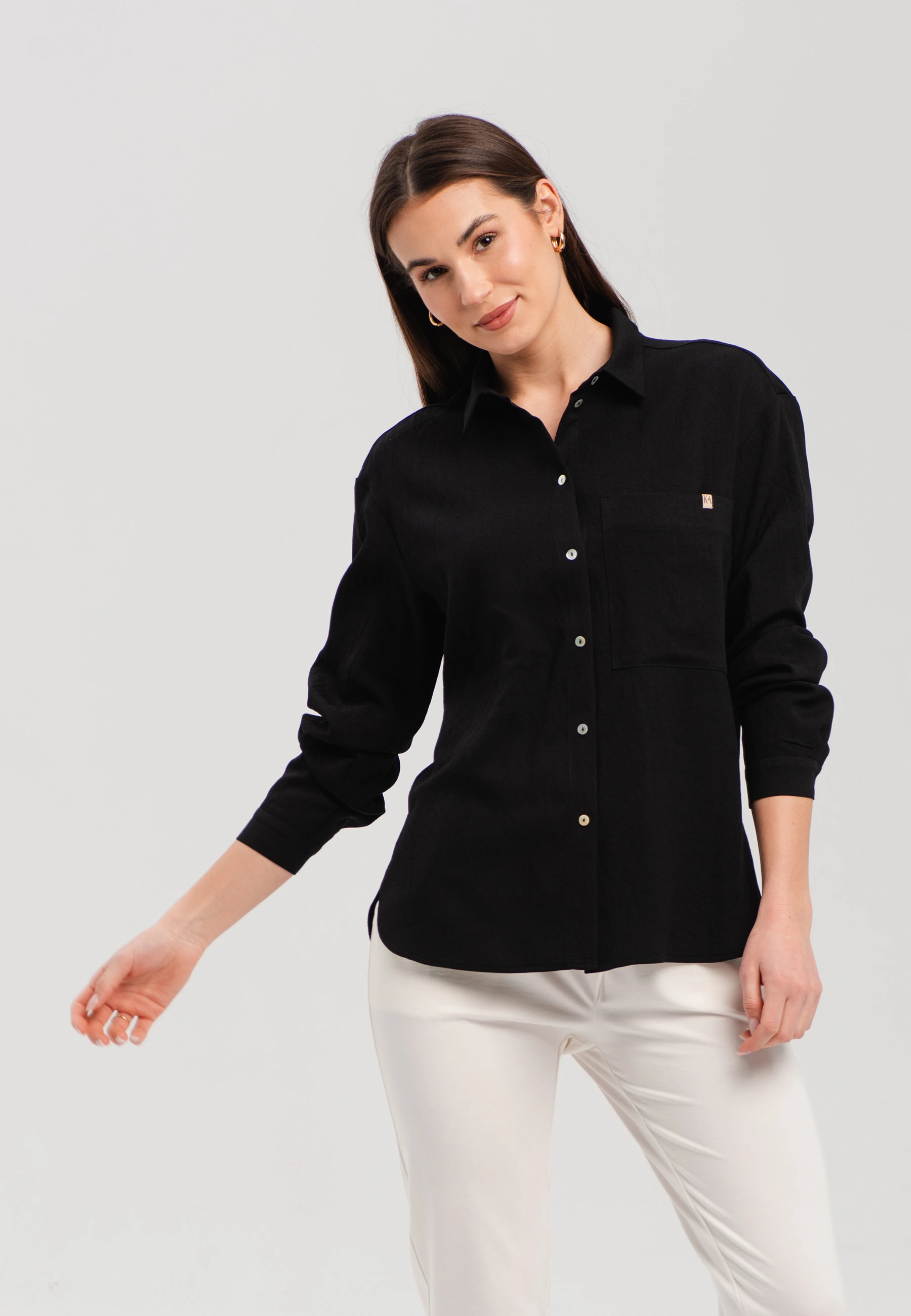 Koszula damska z kieszenią i ozdobnym detalem – klasyka w nowoczesnym wydaniu