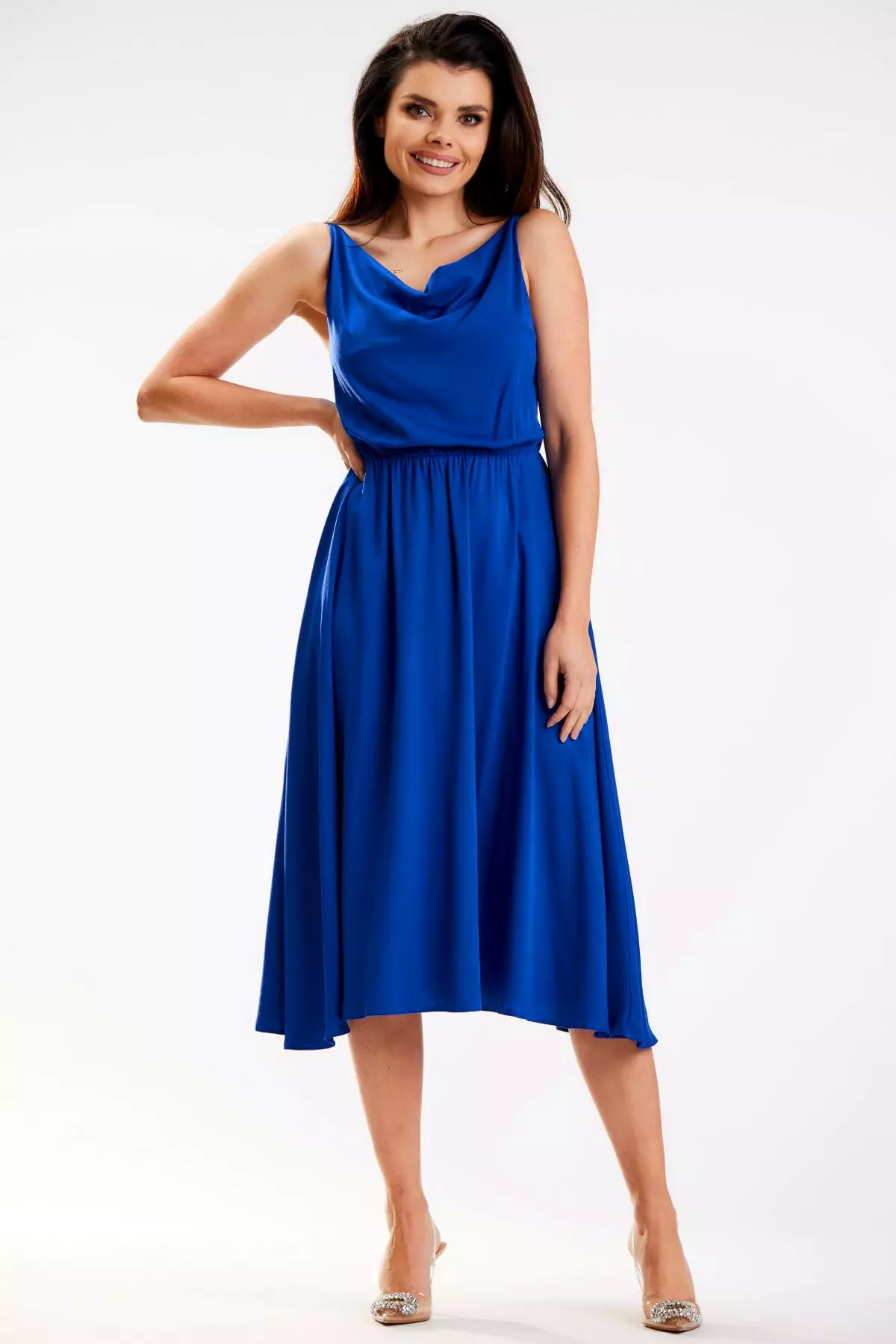Lekka sukienka bez rękawów z dekoltem typu woda