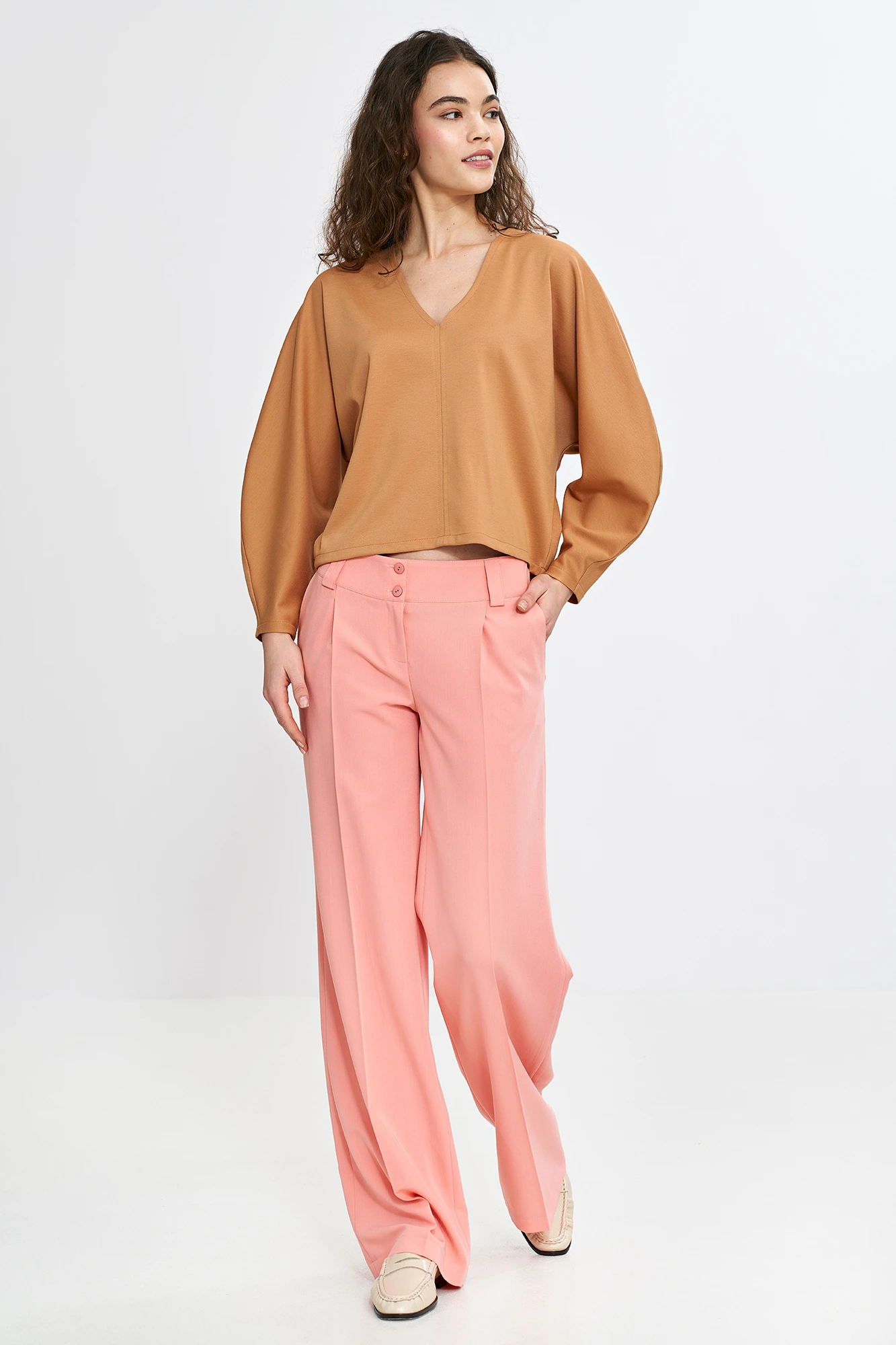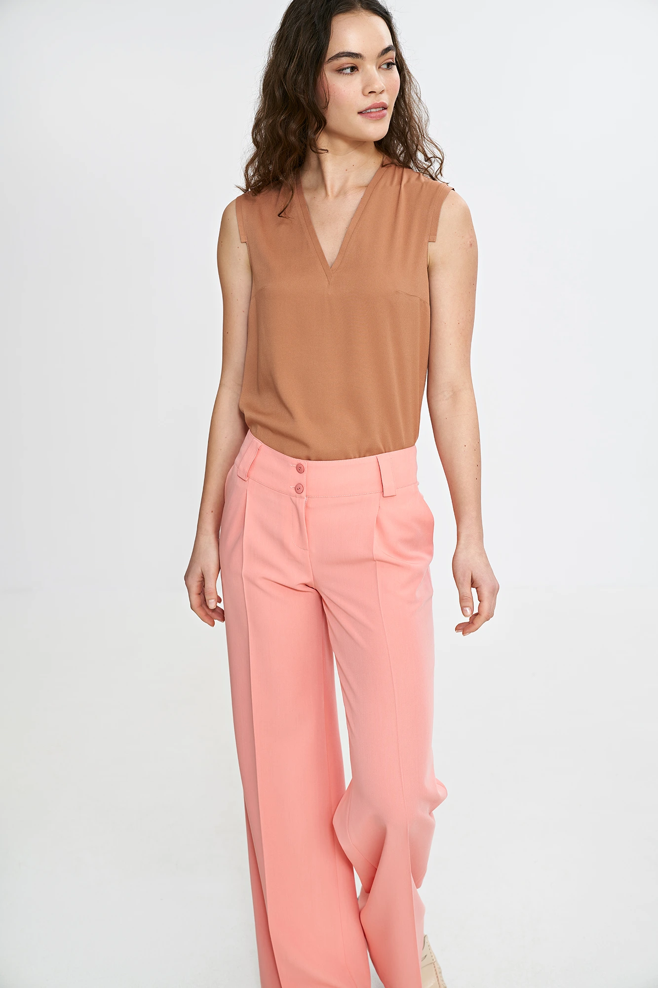Te spodnie to modowy kompromis pomiędzy formalnym szykiem a codzienną wygodą. Luźna nogawka i dopasowany w talii fason zapewniają pełną swobodę ruchów, a jednocześnie świetnie podkreślają kobiecą sylwetkę. To must-have w garderobie każdej kobiety, która ceni klasykę, ale lubi też nowoczesne, lekkie stylizacje.