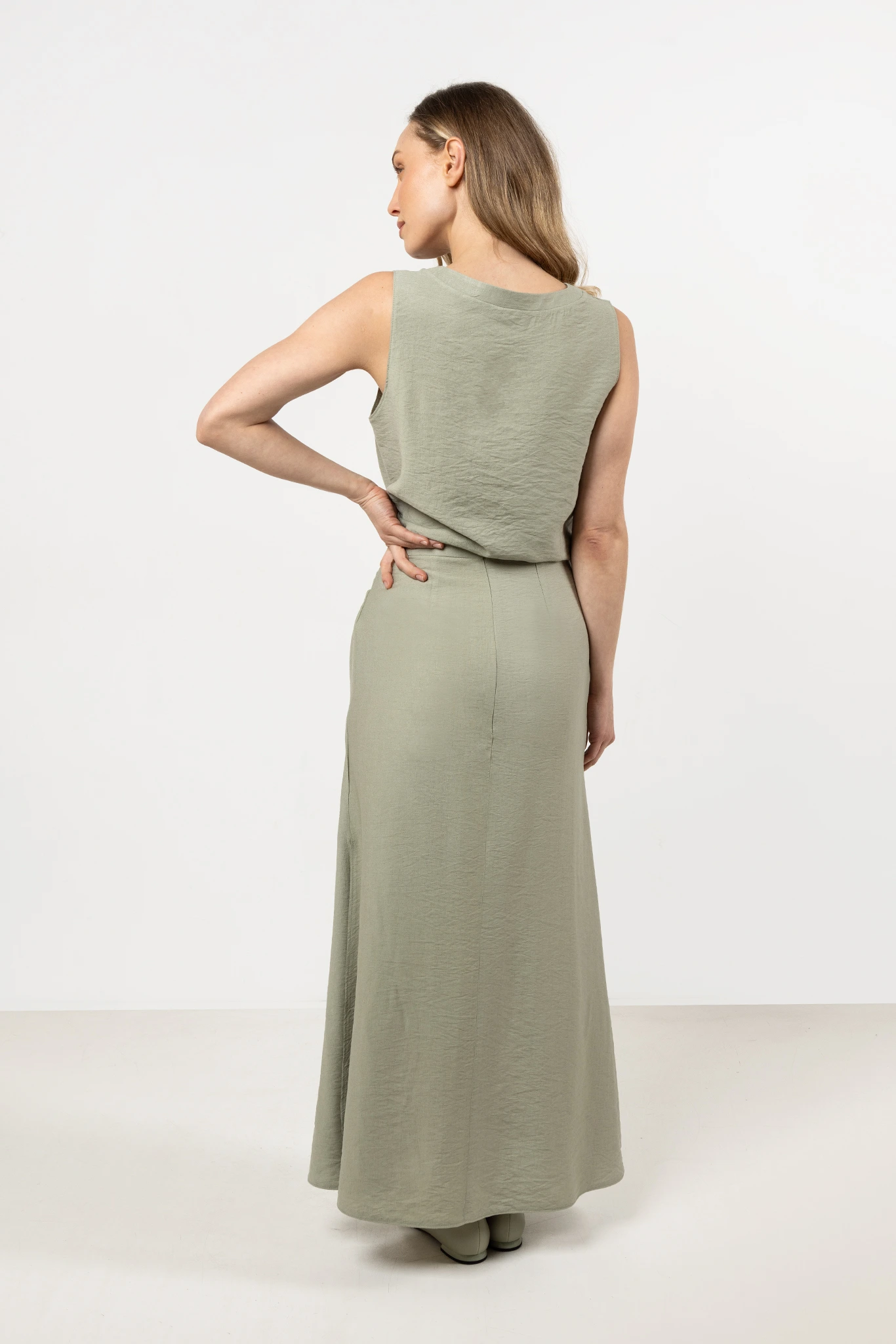 Spódnica maxi z rozcięciem na boku i dopasowaną talią