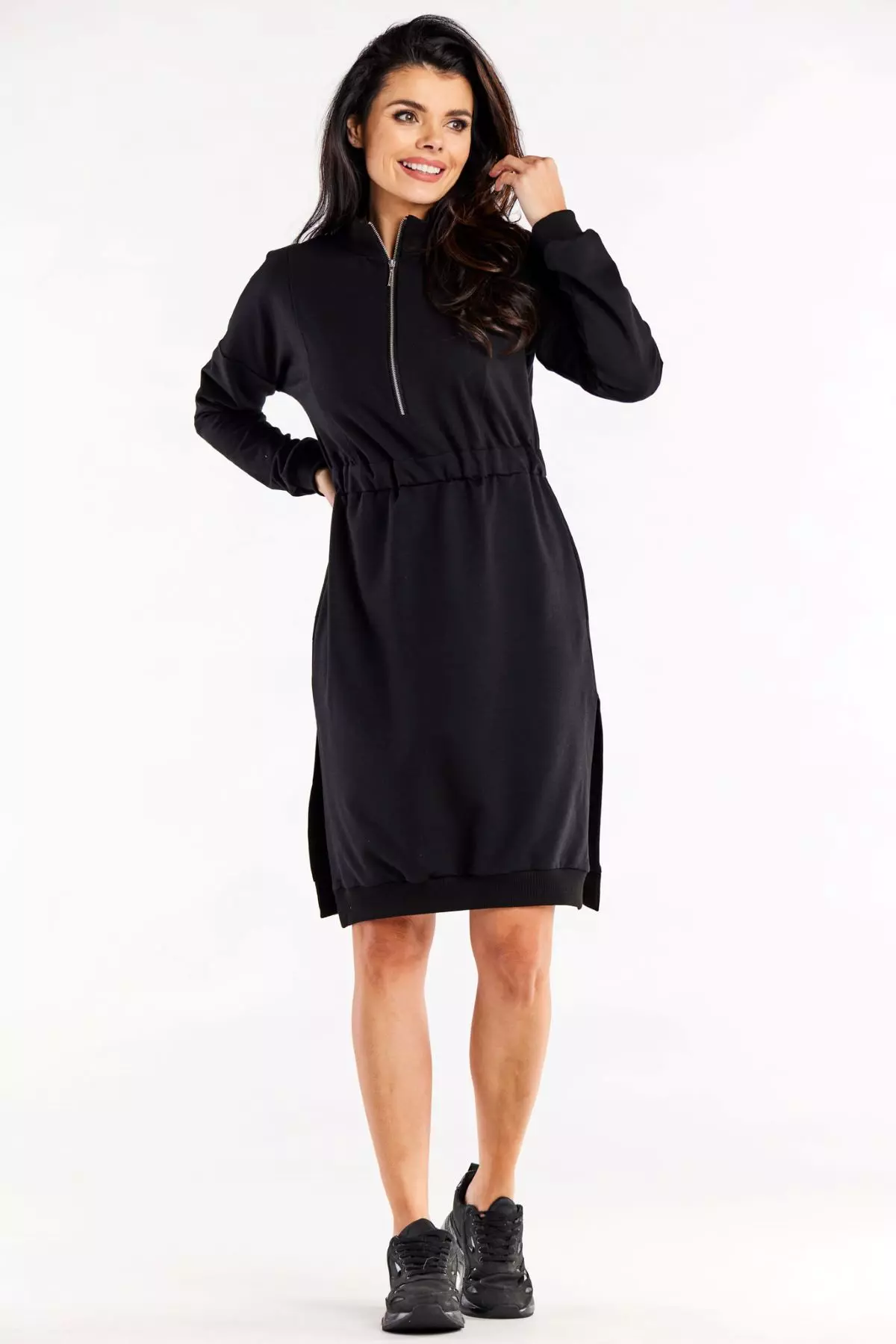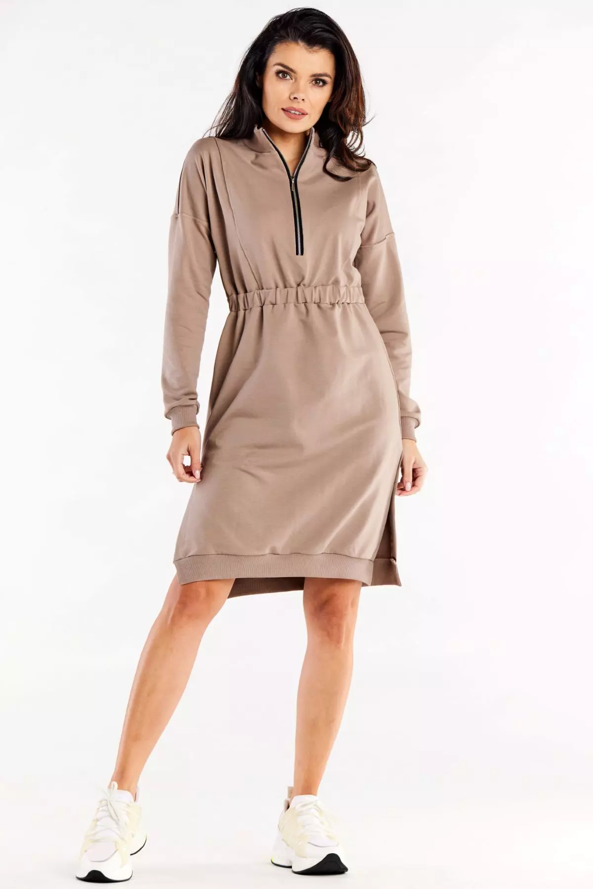 Sportowa sukienka midi z bocznymi rozcięciami i zamkiem