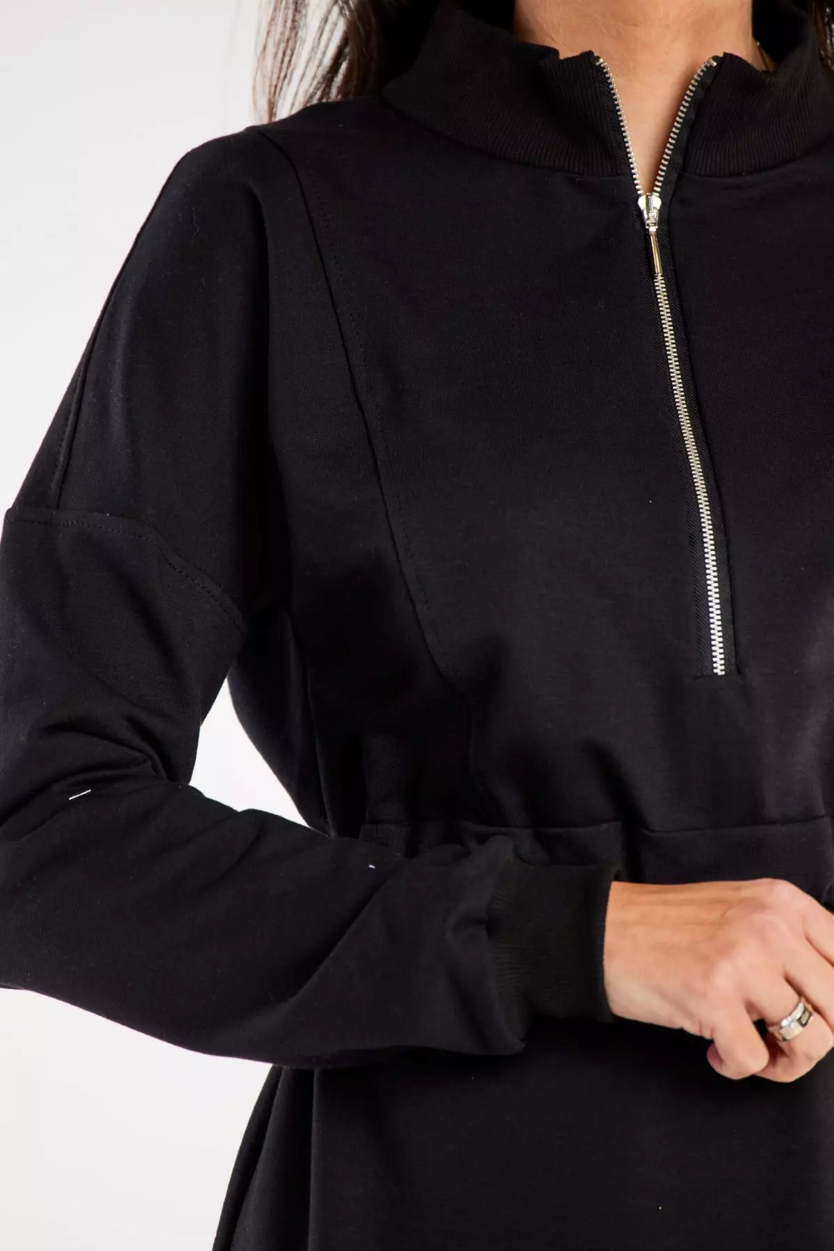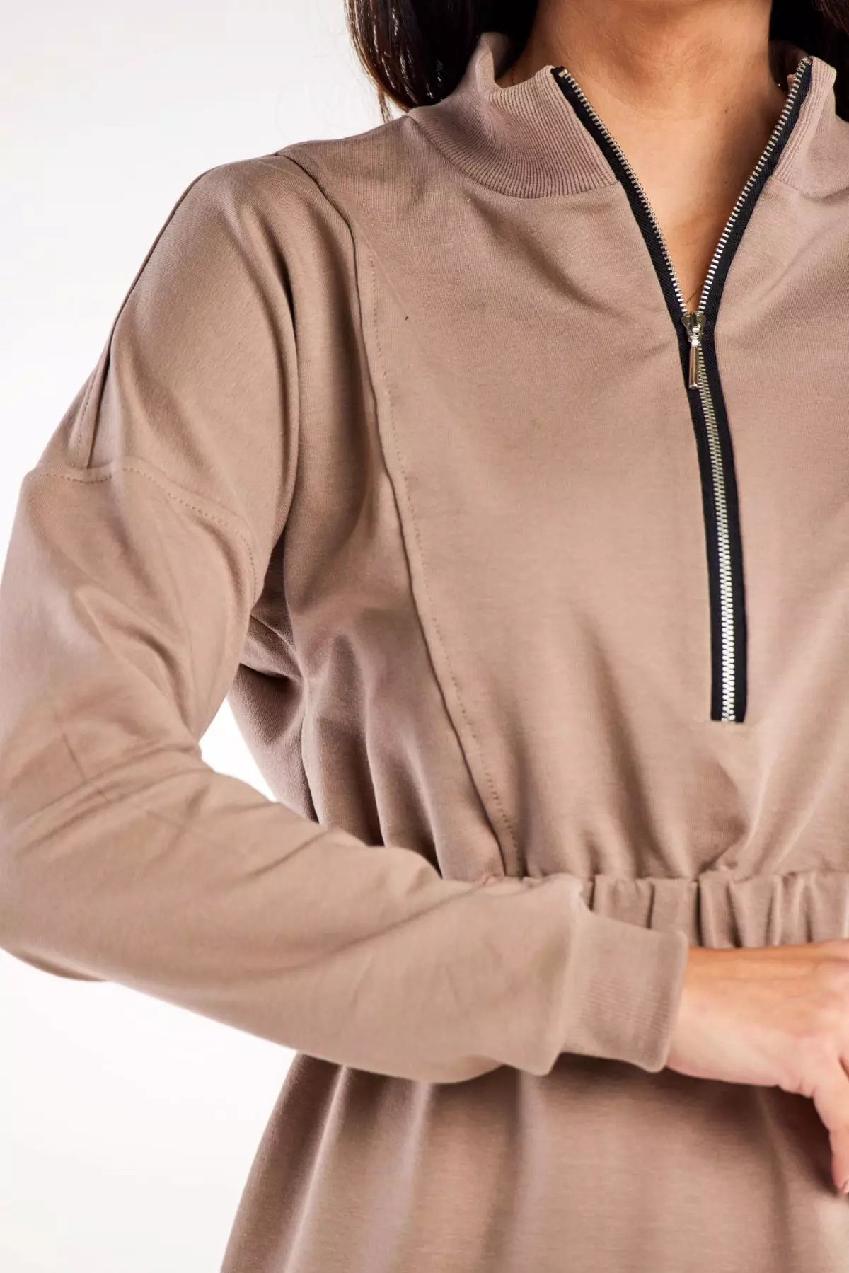 Sportowa sukienka midi z bocznymi rozcięciami i zamkiem to połączenie codziennej wygody z wyrafinowanym stylem. Stworzona z myślą o aktywnych kobietach, które cenią komfort bez rezygnacji z efektownego wyglądu. Wyróżniają ją pionowe przeszycia optycznie wydłużające sylwetkę oraz delikatne rozcięcia po bokach, nadające oryginalnego charakteru. Elastyczna gumka w talii pozwala na idealne dopasowanie i podkreślenie talii, zapewniając przy tym wygodę przez cały dzień. Praktyczny zamek przy dekolcie umożliwia regulację jego głębokości, dzięki czemu sukienka świetnie sprawdzi się zarówno na codzienne spotkania, jak i na bardziej eleganckie wyjścia.