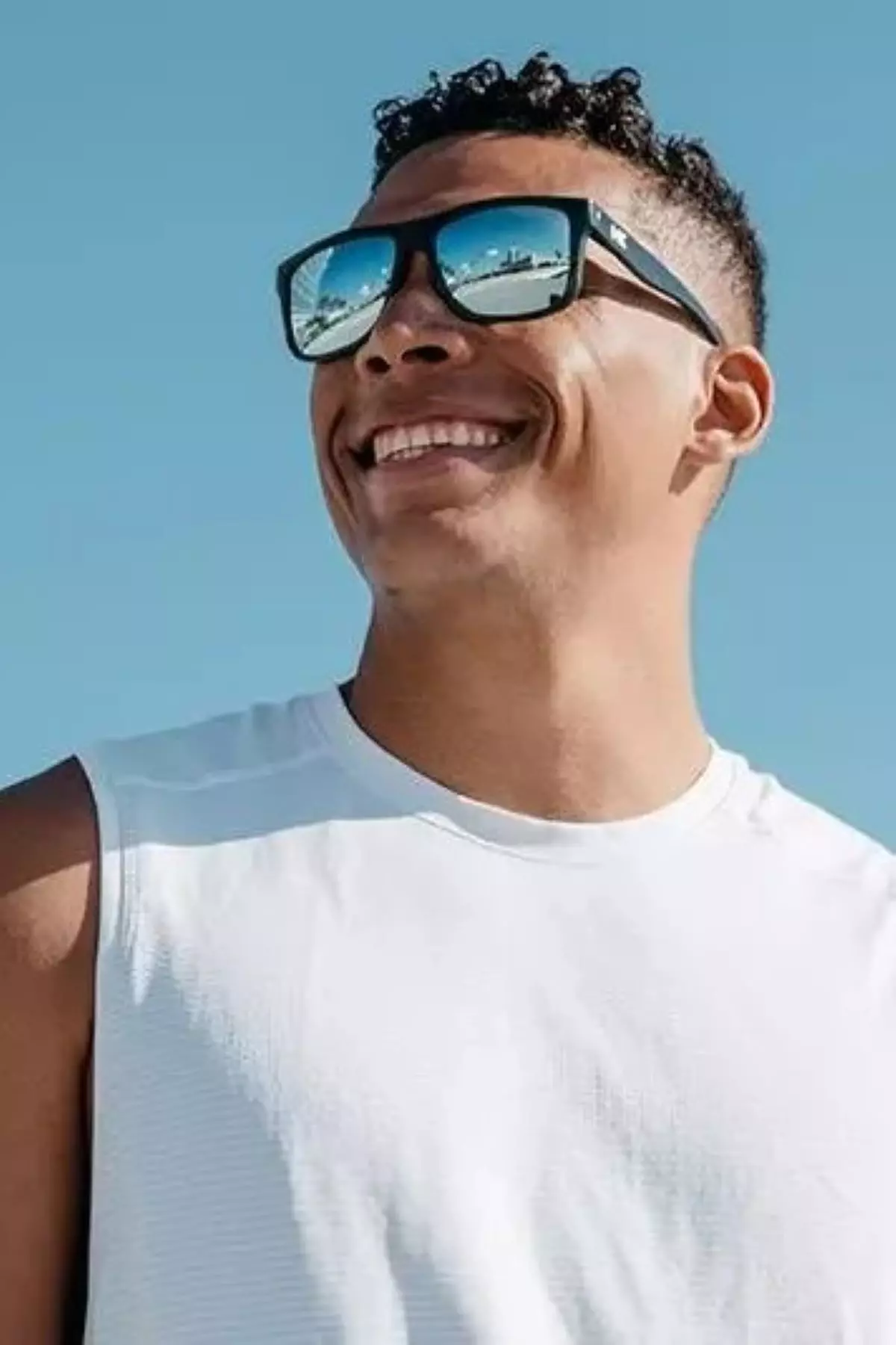 Sportowe męskie okulary słoneczne z silikonowymi noskami, które sprawią, że oprawki podczas uprawiania sportów nie będą zsuwać się z nosa. Jasnobłękitne lustrzane soczewki z polaryzacją poprawią widzenie kolorów oraz poprawią kontrast. Dla jeszcze większego komfortu ramiona zostały wyposażone w sprężynowe zawiasy oraz duże soczewki. Model dedykowany osobą o średnich, bądź dużych głowach. Jeżeli jesteś aktywny fizycznie na pewno, będą dla Ciebie strzałem w dziesiątkę! Ponadto filtry UV400 ochronią Twoje oczy przed szkodliwym promieniowaniem ultrafioletowym.