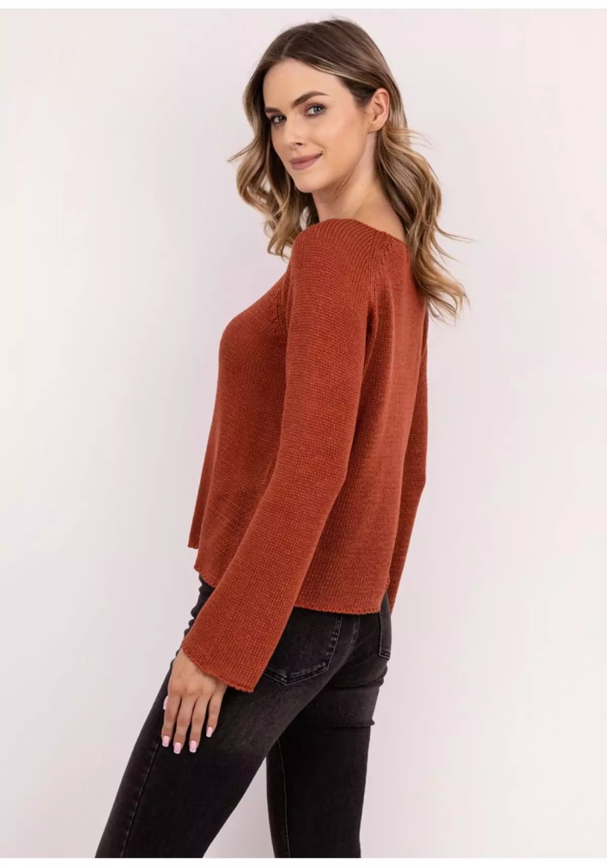 Stylowy damski sweter z szerokimi rękawami, idealnie pasujący do eleganckiego, ale jednocześnie praktycznego stylu. Wykonany z miękkiej, elastycznej dzianiny, zapewnia nie tylko komfort noszenia, ale także wszechstronność, sprawdzając się zarówno w codziennych, jak i bardziej formalnych stylizacjach. Sweter cechuje się minimalistycznym krojem, długimi rękawami oraz delikatnie zaokrąglonym dekoltem, co czyni go idealnym wyborem dla kobiet, które cenią sobie klasyczne fasony z nowoczesnym akcentem. Świetnie komponuje się z różnymi rodzajami spodni i spódnic, co pozwala na swobodę w tworzeniu zróżnicowanych zestawów.