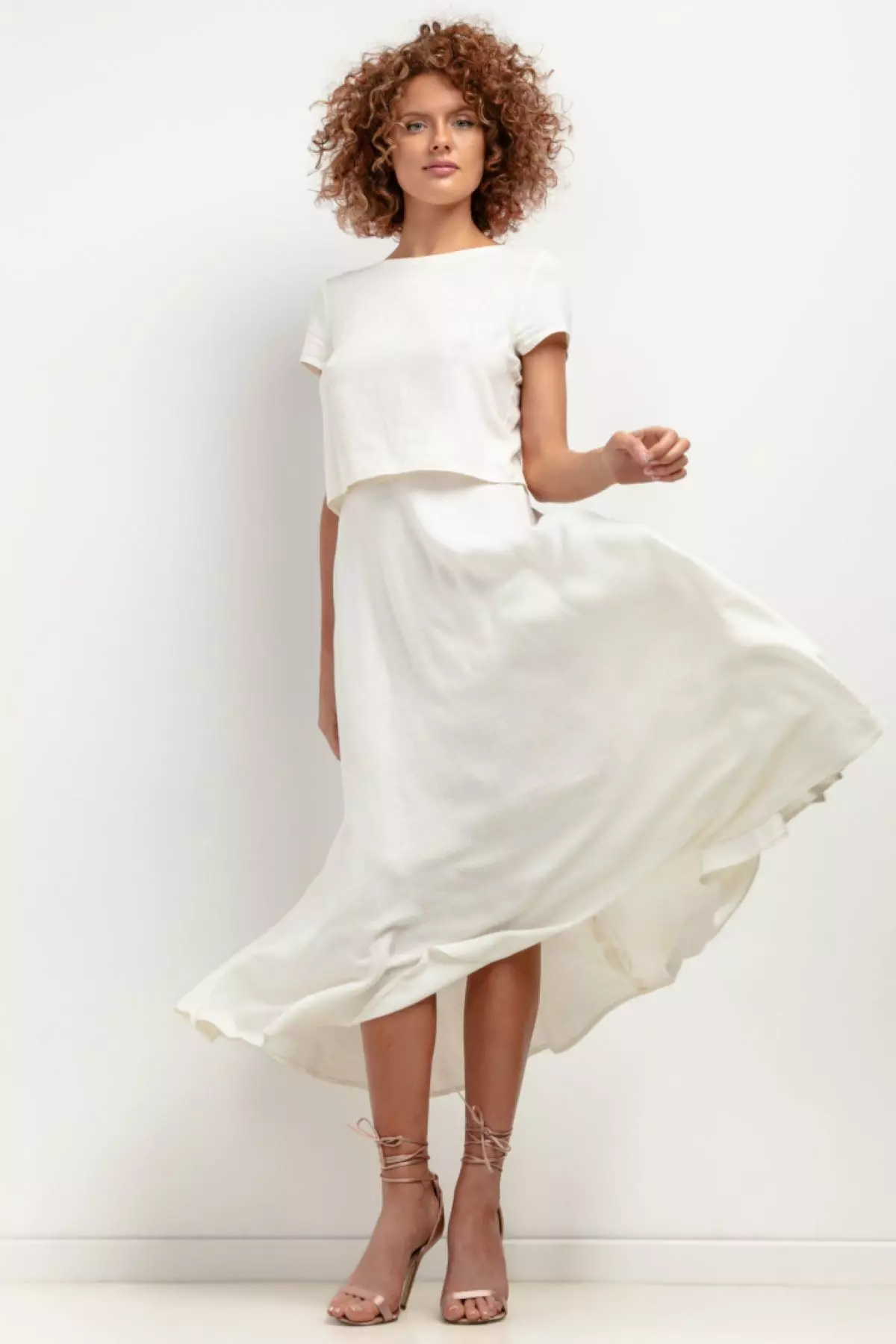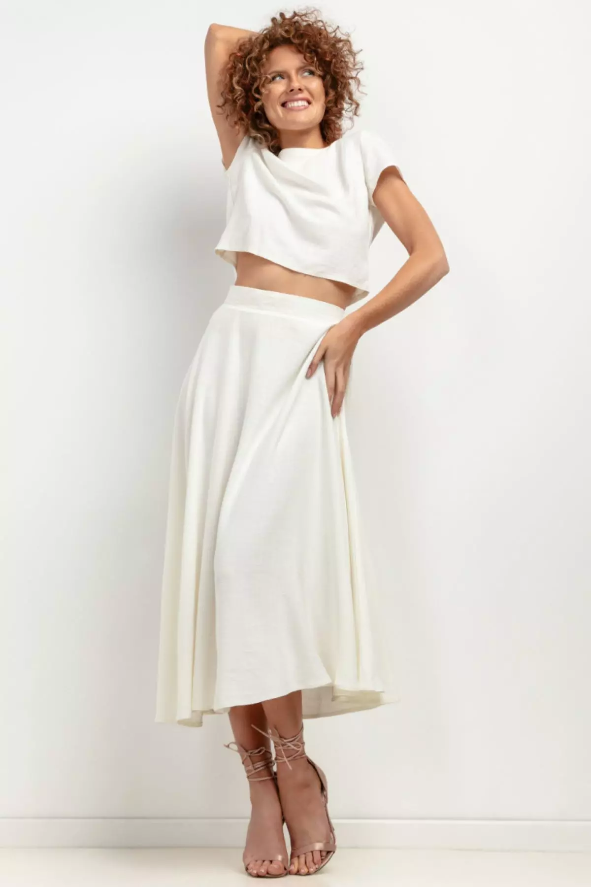 Stylowy i wygodny zestaw na co dzień w jasnym kolorze, wykonany z mieszanki lnu i wiskozy. Ten komplet składa się z lekkiej, zwiewnej bluzki oraz dopasowanych spodni, idealnych na ciepłe dni. Naturalne włókna zapewniają komfort i swobodę ruchów, a klasyczny krój sprawia, że zestaw doskonale nadaje się zarówno na spacer, jak i na spotkanie z przyjaciółmi. Wybierz nasz zestaw, aby czuć się modnie i swobodnie każdego dnia.