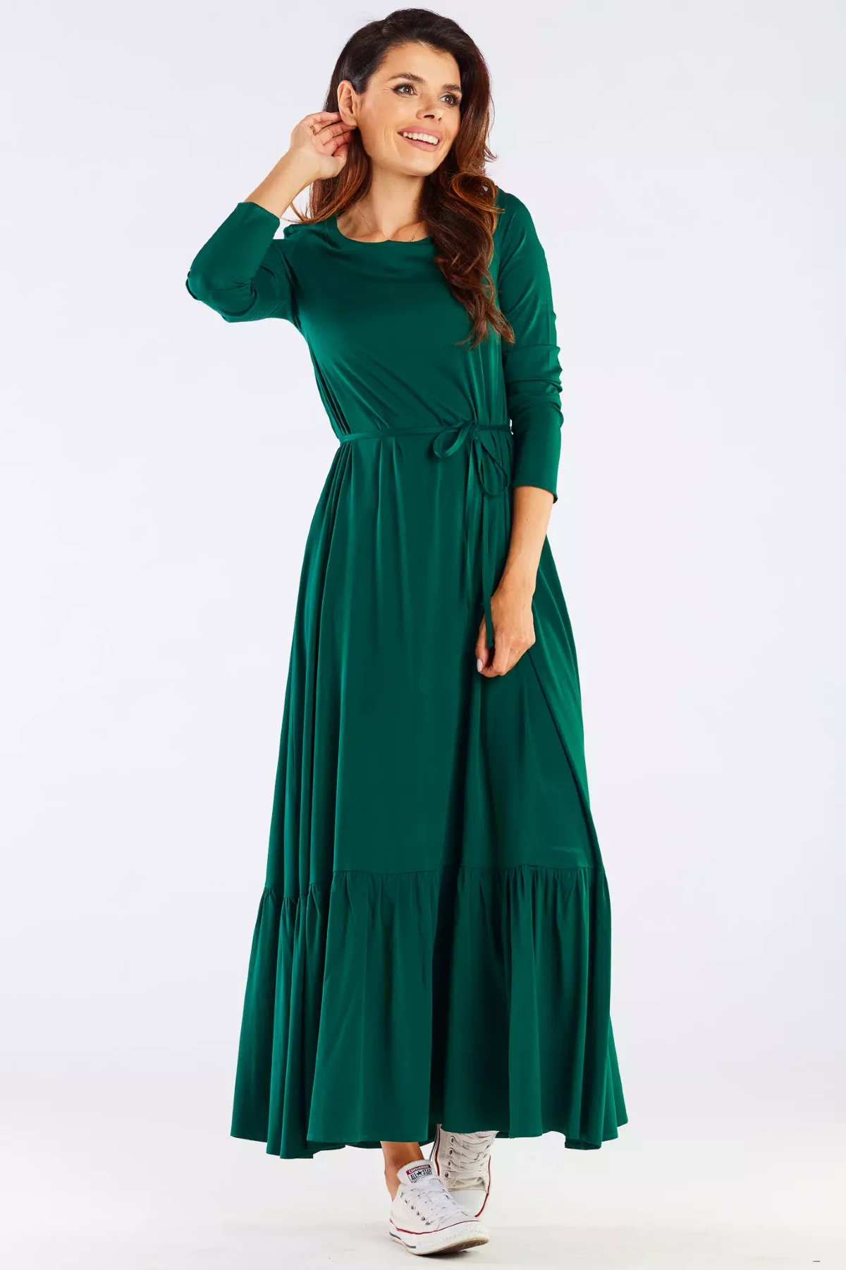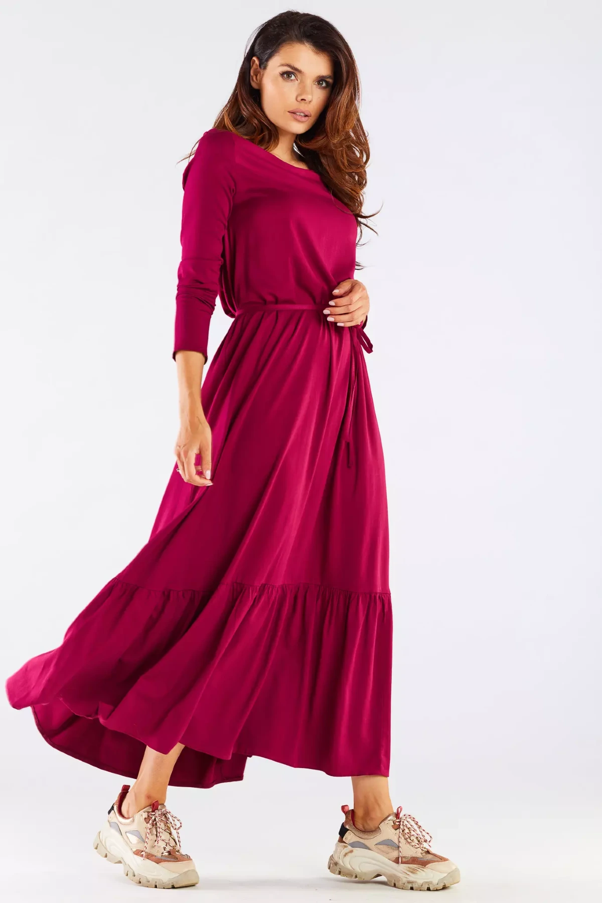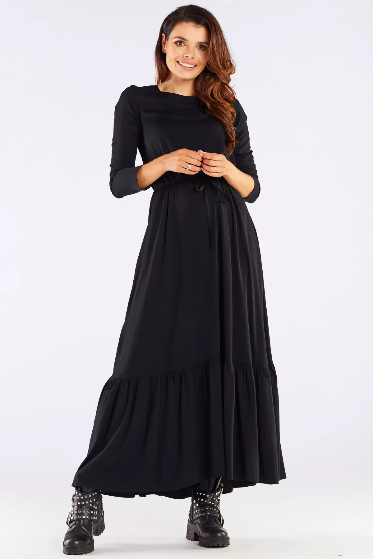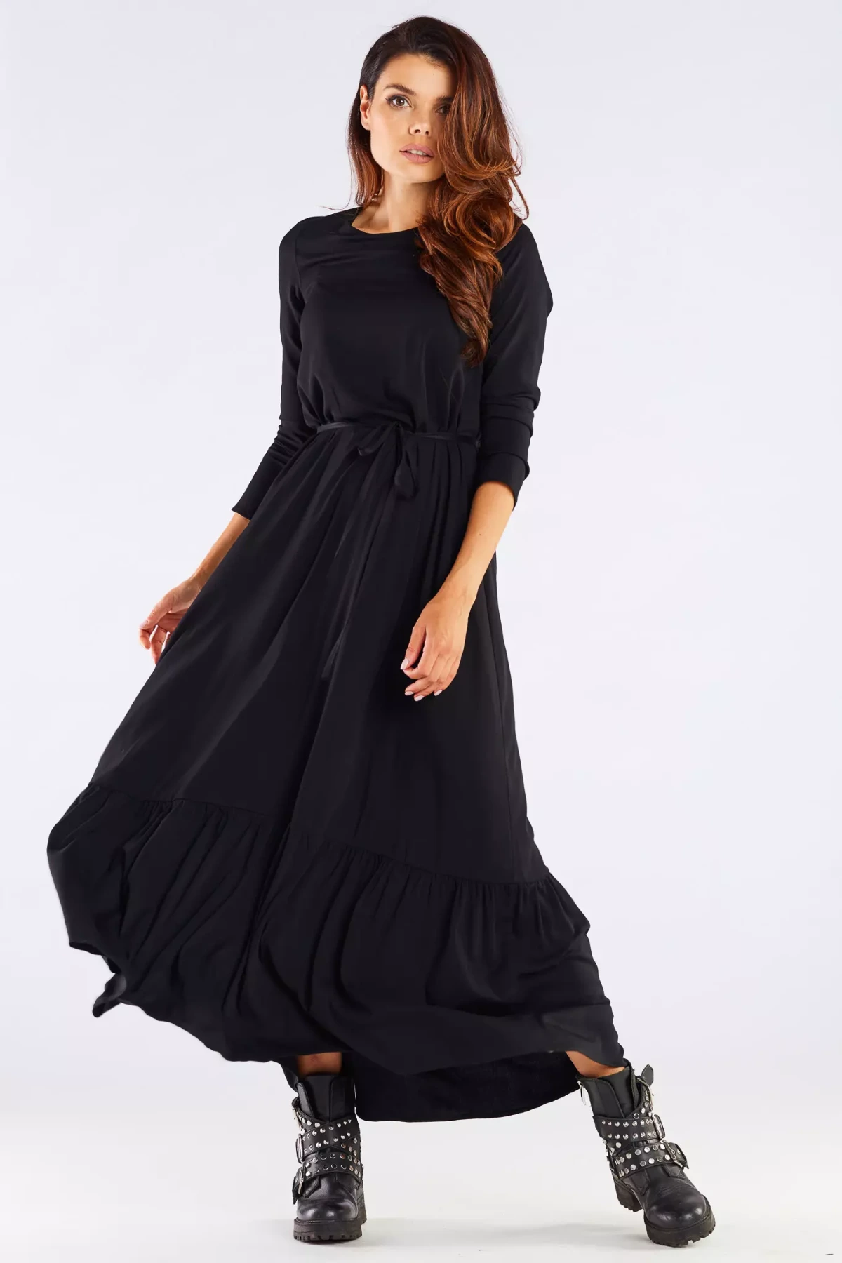 Sukienka maxi o luźnym kroju to must-have dla kobiet łączących wygodę z modnym wyglądem. Rozkloszowany fason wykończony efektowną falbaną nadaje lekkości i subtelnej elegancji. Luźna forma świetnie ukrywa drobne mankamenty figury, zapewniając jednocześnie pełną swobodę ruchów. Jeśli chcesz podkreślić talię, wystarczy dodać pasek, który nada sylwetce proporcji. To uniwersalny model, który sprawdzi się zarówno na co dzień, jak i przy wyjątkowych okazjach.