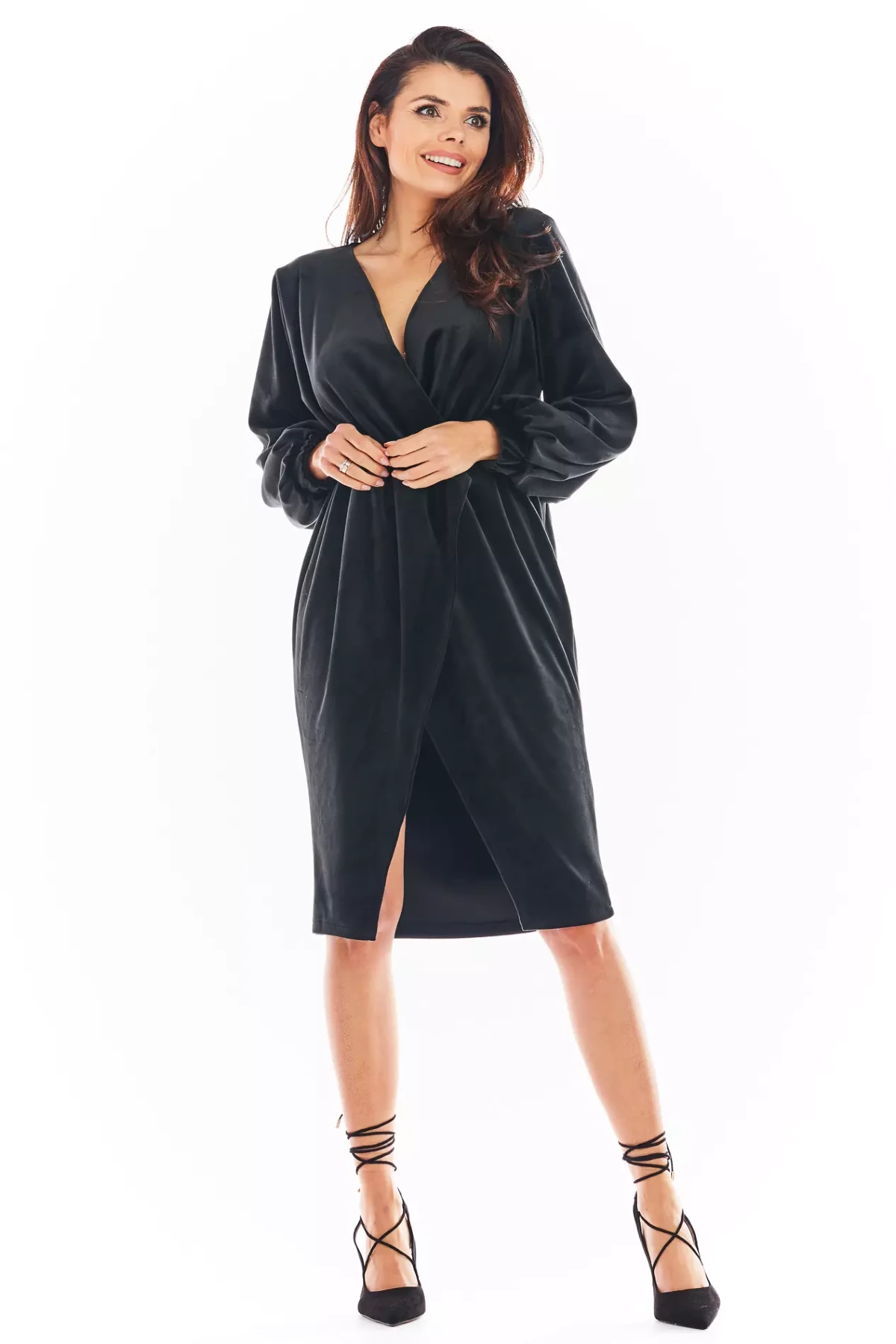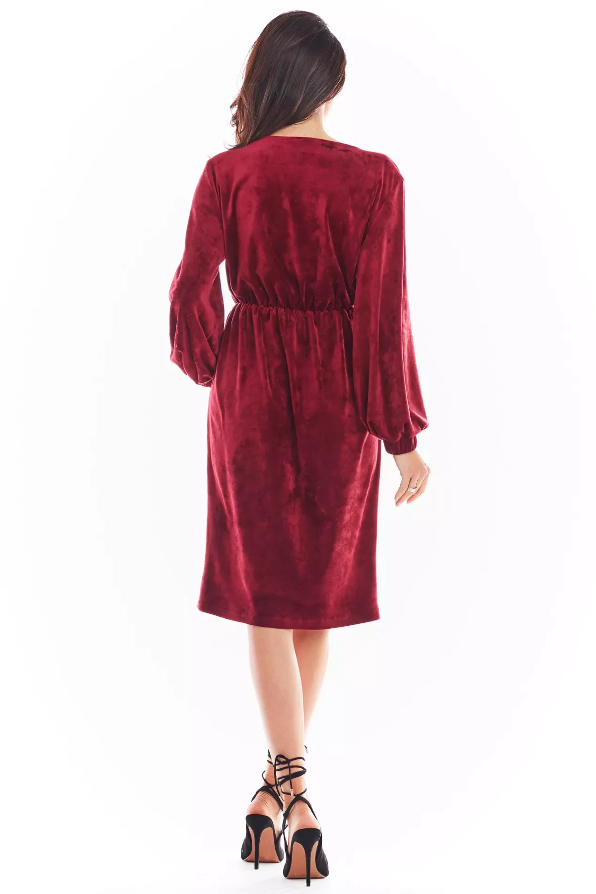 Welurowa sukienka kopertowa midi to elegancka propozycja, która subtelnie podkreśla sylwetkę i dodaje jej wyjątkowego charakteru. Wykonana z miękkiego, przyjemnego w dotyku materiału, zapewnia komfort przez cały dzień. Długie, bufiaste rękawy zakończone elastycznymi mankietami wprowadzają lekkość, a marszczenia w talii gwarantują idealne dopasowanie. Kopertowy dekolt w kształcie litery V dodaje sukience kobiecego wdzięku, a subtelne rozcięcie z przodu zapewnia swobodę ruchów. Idealna na wyjątkowe okazje, wieczorne wyjścia lub świąteczne spotkania.