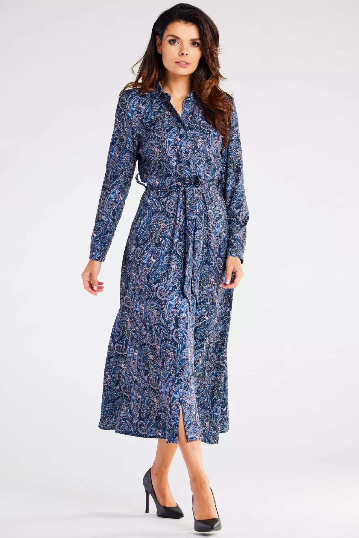 Wzorzysta sukienka maxi w stylu szmizjerki